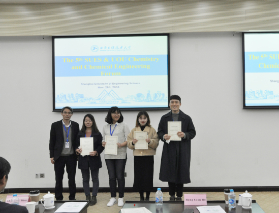 The 5th SUES & UOU Chemistry and Chemical Engineering Forum was held in the 3rd Lecture hall of our school's Library and Information Center On November 26th, which was co-organized by the School of Chemistry and Chemical Engineering in Shanghai University of Engineering Science and School of Chemical Engineering and Bioengineering University of Ulsan.